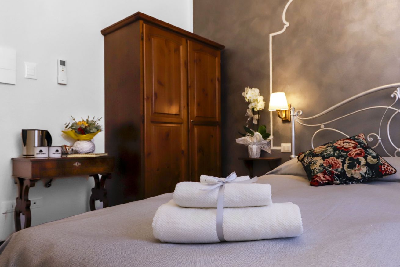 Questa è la stanza più piccola del nostro b&b, ma come tutte le altre profuma di storia e di accoglienza familiare. Il letto e gli armadi in legno sono in perfetto stile fiorentino, ma soprattutto qui c’è tutto quello che conta per chi è in viaggio come te. Il bagno è condiviso con un’altra camera, spazioso e dotato di tutti i comfort.